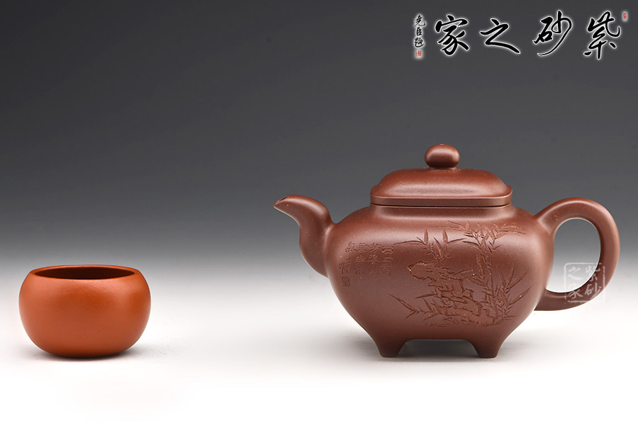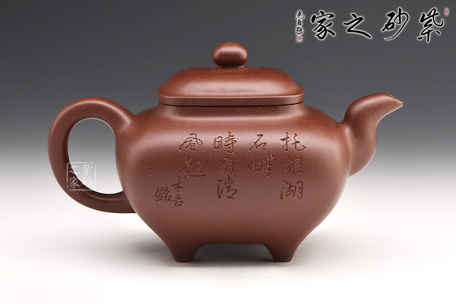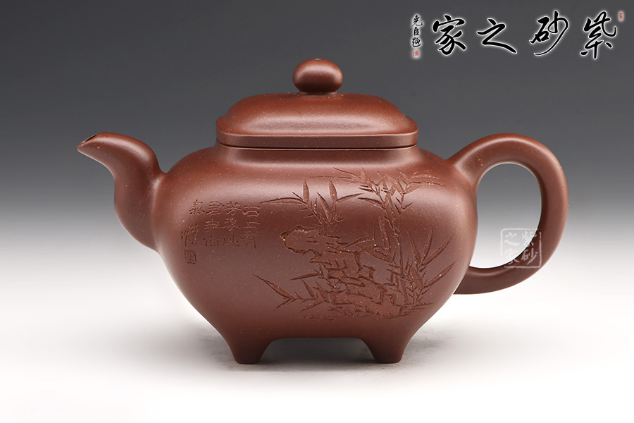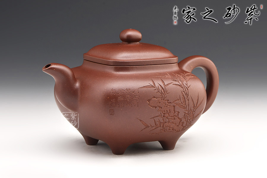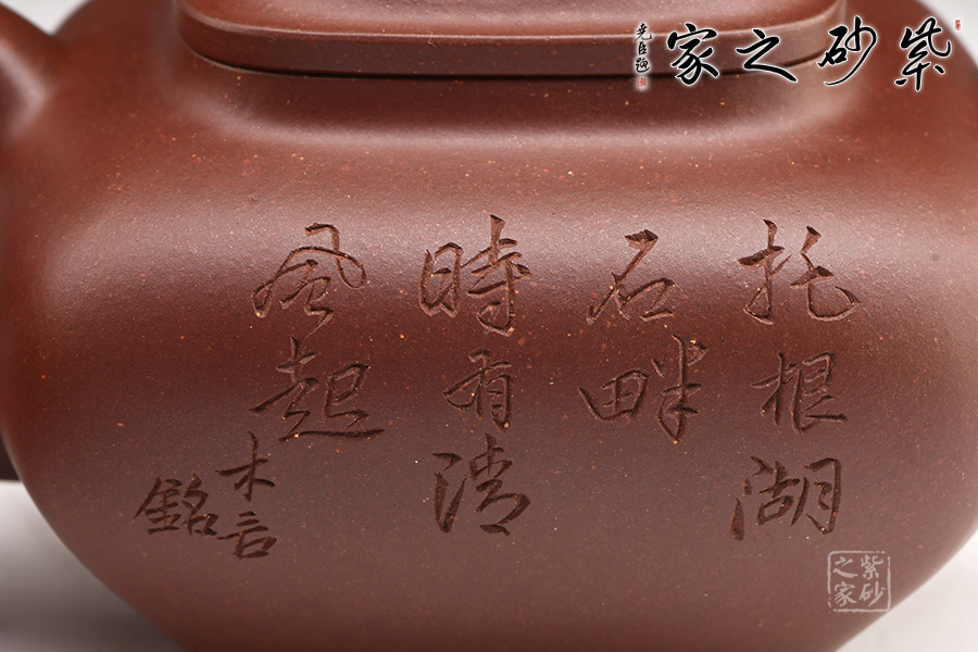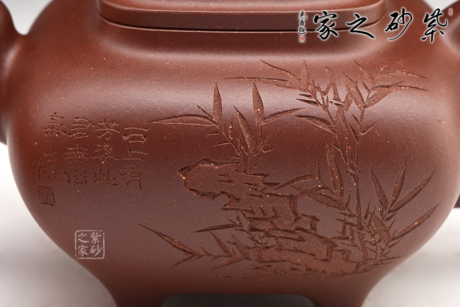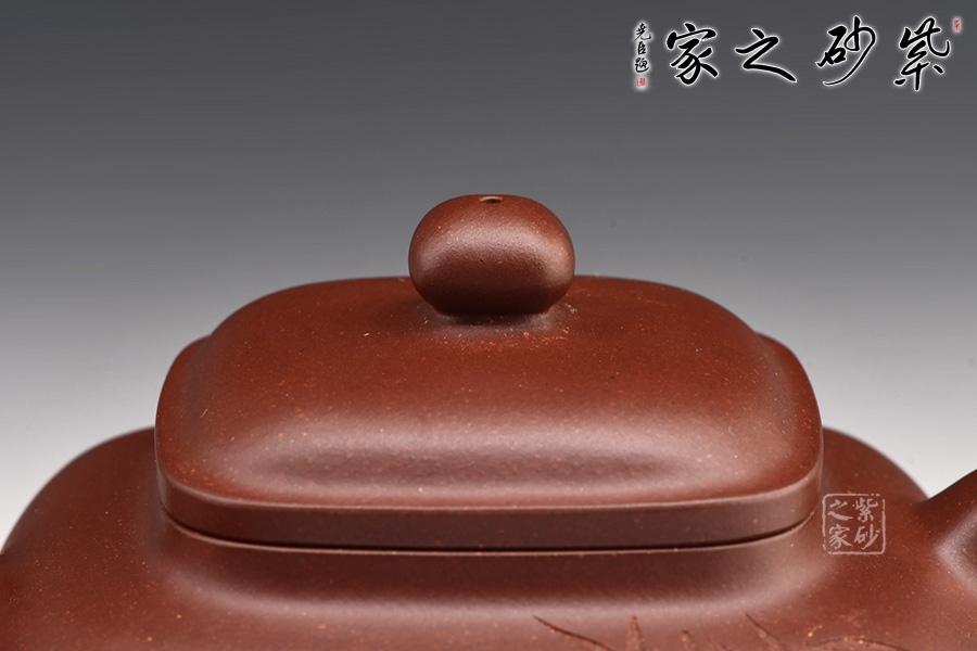傳爐是經(jīng)典的方器造型,其制造型取材于青銅器,器身形狀以方器為基本型,但方中寓圓,比一般方器多了一份圓潤之美。壺嘴的造型難度亦高,方中帶圓,圓里寓方。三彎流式曲折有致,出水流暢;壺蓋制作精良,壺蓋能四面通轉(zhuǎn)無礙,且面面俱到。此壺敦厚樸實,風格雅致,隱隱有古風韻。工藝精致漂亮,木言刻繪,強強聯(lián)合,值得收藏!