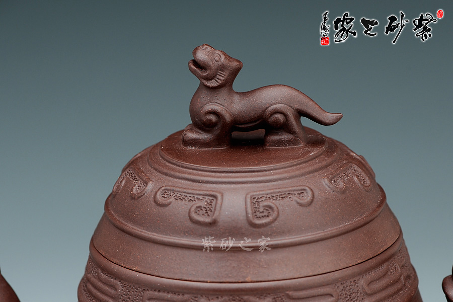 壺蓋如同將軍的帽子,與壺體融合為一體,且壺蓋上獅子坐陣,特制的壺鈕為此壺加入了一份霸王之氣。如此精美的圖案配比加上氣勢雄厚的主題,真乃收藏觀賞的絕佳選擇。