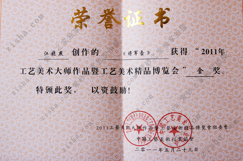 2005年10月,在廣州舉行的全國陶瓷展中《將軍壺》獲優(yōu)秀獎(jiǎng)。