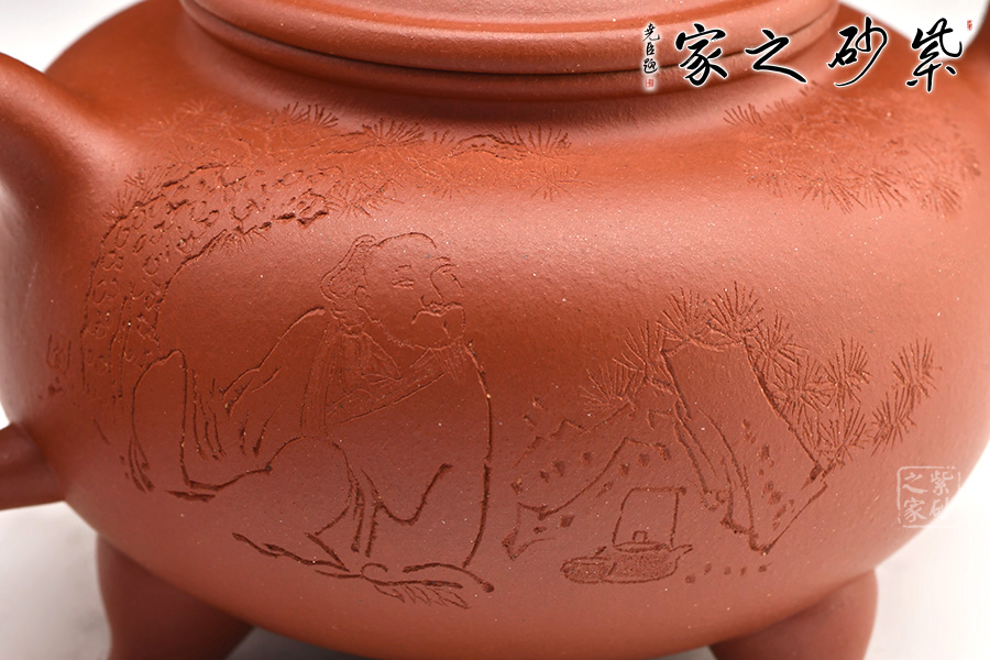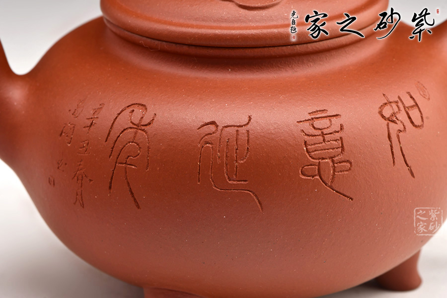 所謂壺中天地寬,一壺一世界。此款壺器型素凈雅致、古樸,壺身渾圓,口蓋寬闊,三彎嘴內(nèi)斂,氣息莊端,且聚氣,壺蓋的如意圖案象征吉祥如意,一生接福,最出彩的部分為三乳足,使得整個壺型穩(wěn)重,支撐整個壺體,使之大氣不洪。