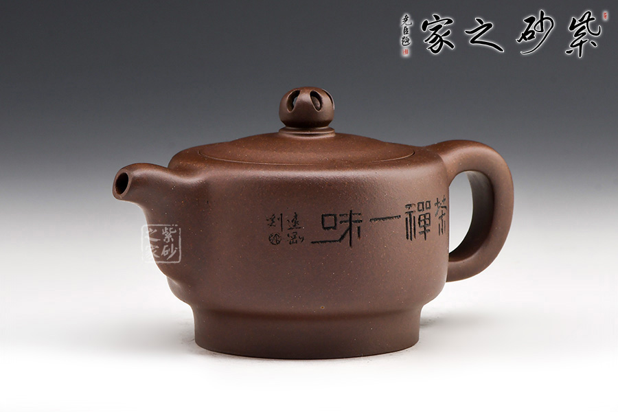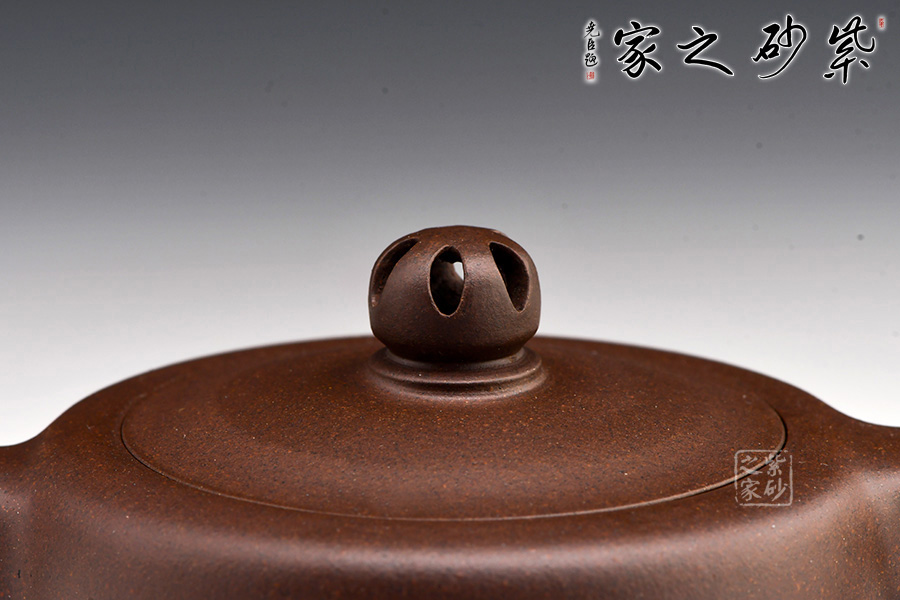 壺嘴暗接成型,壺基豐碩富有靈韻;嵌蓋設(shè)計(jì),蓋與壺身完美銜接,鏤空壺鈕極似香爐造型,似有縷縷檀香裊裊升起,凈人心靈;暗接近方形把寬闊溫厚。