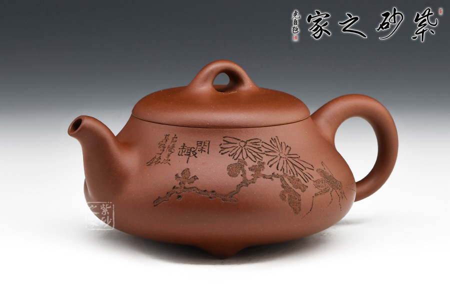 原礦紫泥精制作壺,刻繪閑趣,觀之更感清新自然之氣,品茗之間更是享受。