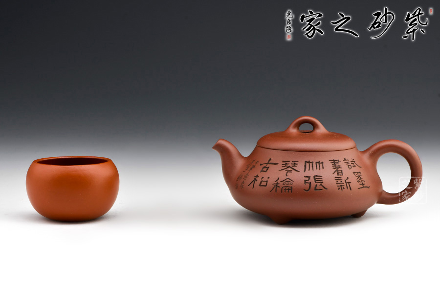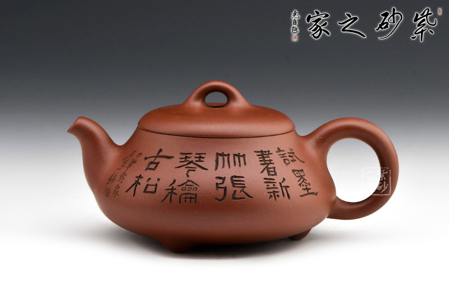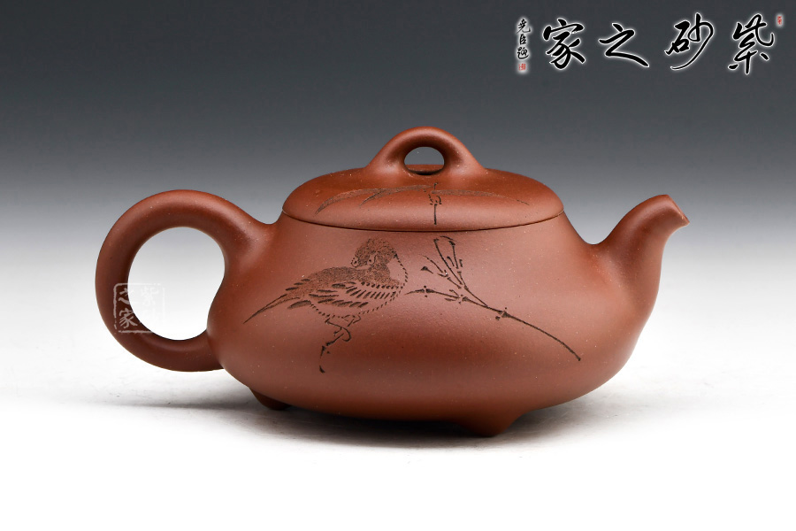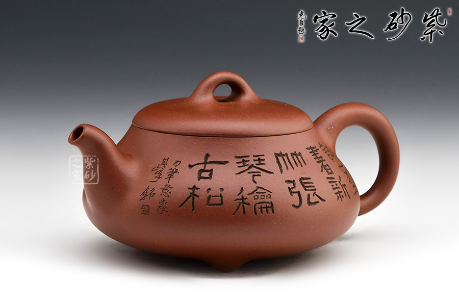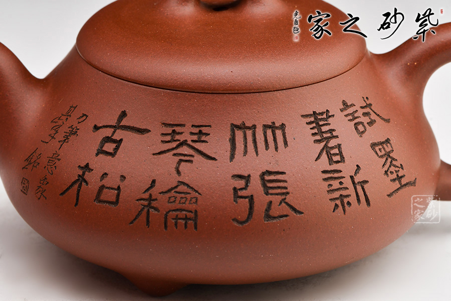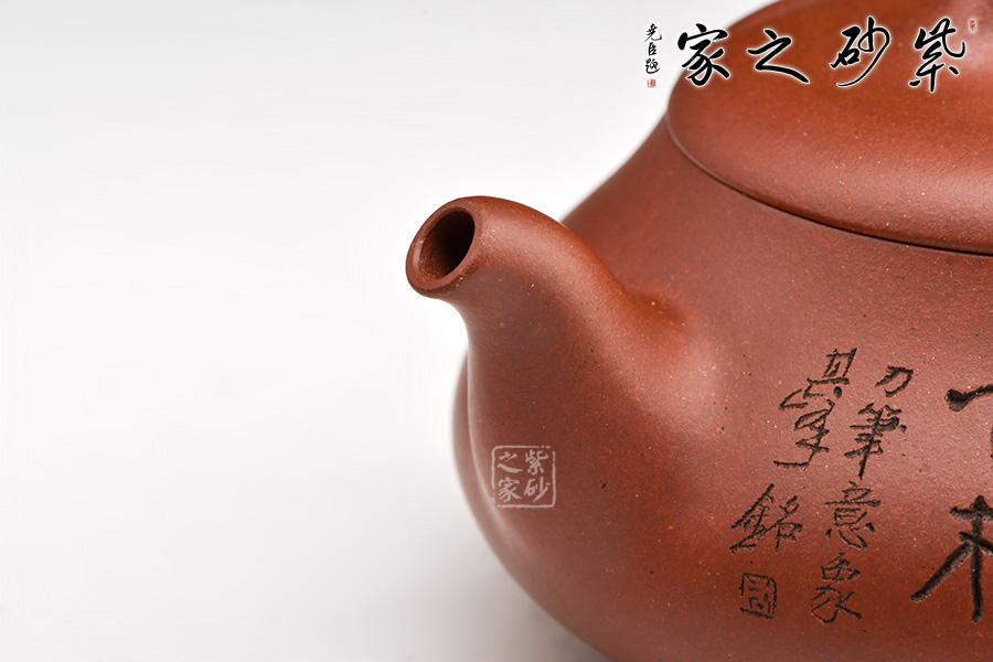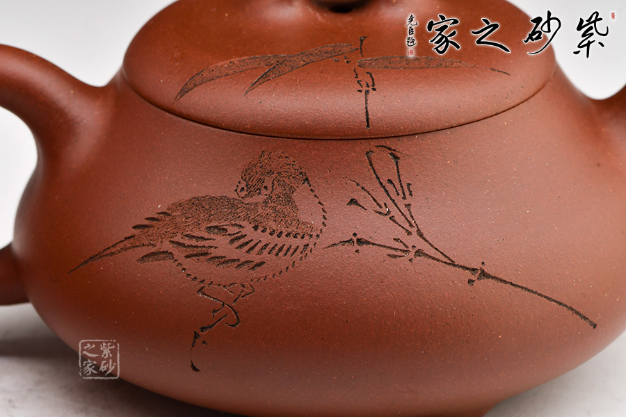原礦紫泥精制作壺,雙面刻繪,詩話相合,觀之更感清新自然之氣,品茗之間更是享受。