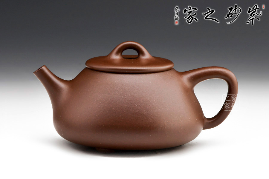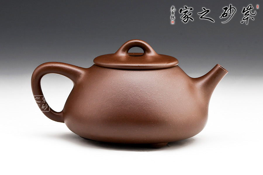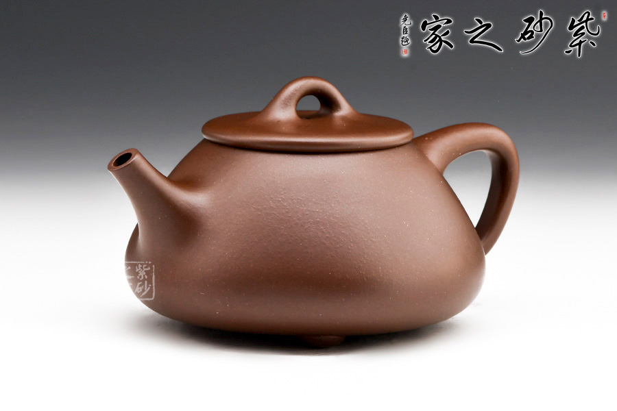 這是一款經(jīng)典的石瓢壺。整款器型非常到位,石瓢挺俊之美,淋漓盡致,然此壺壺身較之傳統(tǒng)款型則顯得更加圓潤一些。整個壺身呈“金字塔”形,由于重心下垂使用很穩(wěn)當,更具有極大的觀賞性。