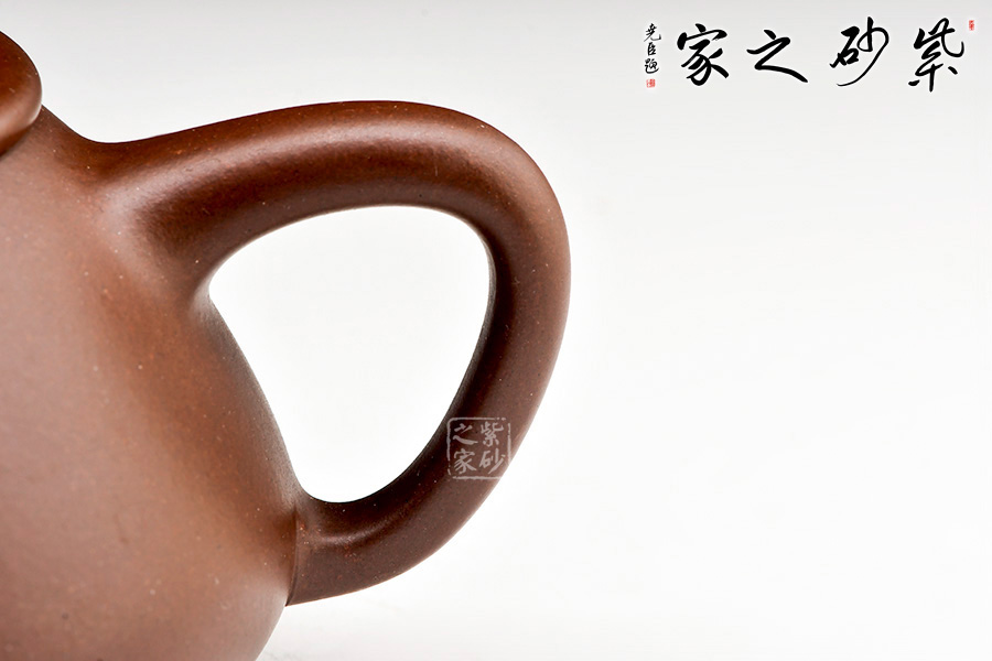 壺鈕采用常見的拱橋造型,使整款壺在簡單中多了一份活力,壺蓋與壺身嚴絲密縫使此壺具有極高的實用性。