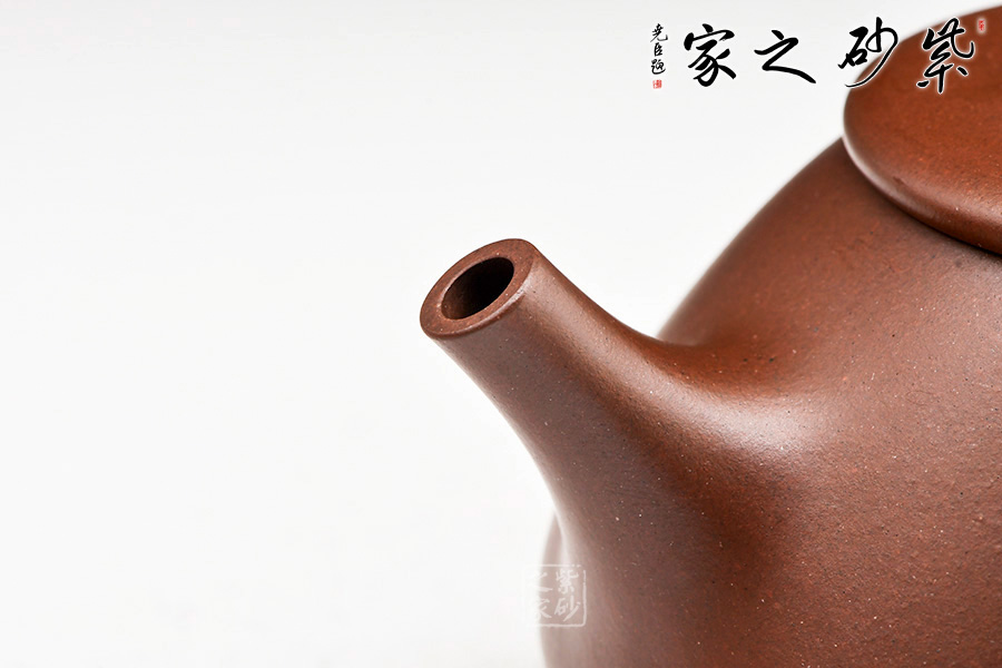 壺身與壺底的銜接,轉(zhuǎn)折恰到好處,精神又不失銳氣。流把鈕均為暗接手法,與壺身宛若一體,可見功力。流把張弛有度,比例恰到好處。