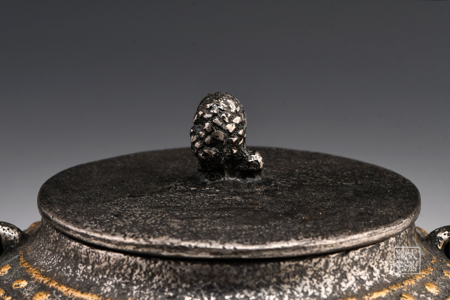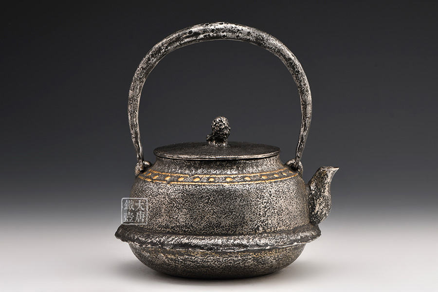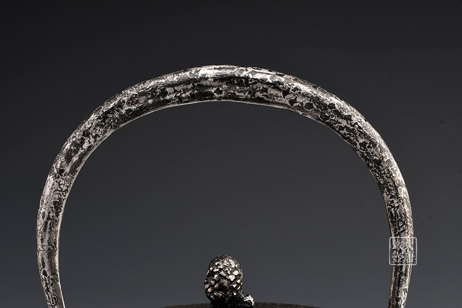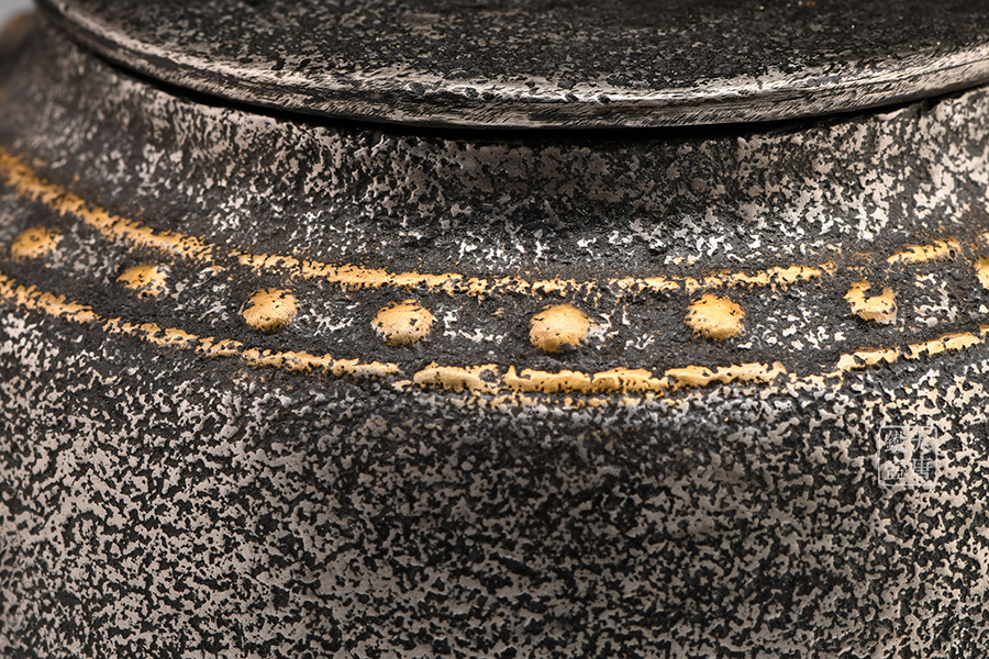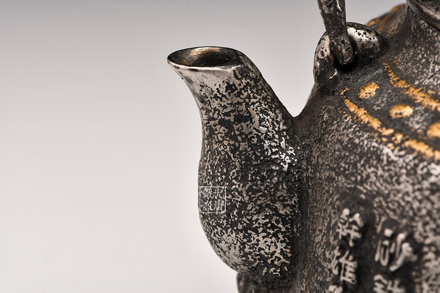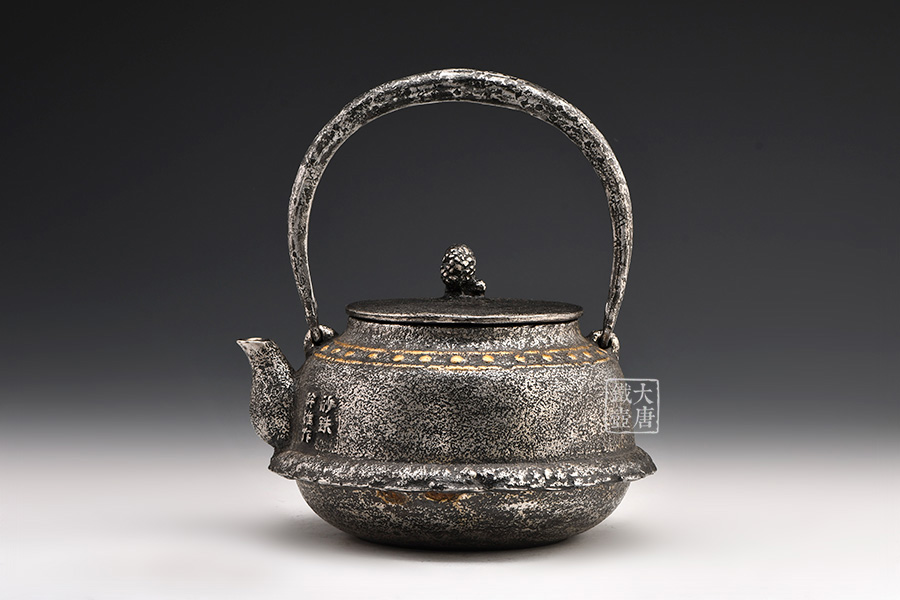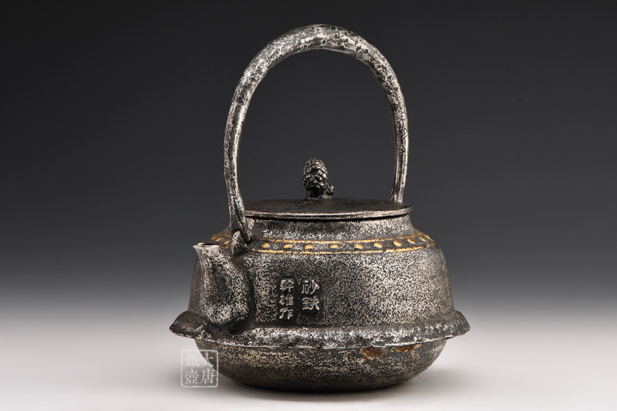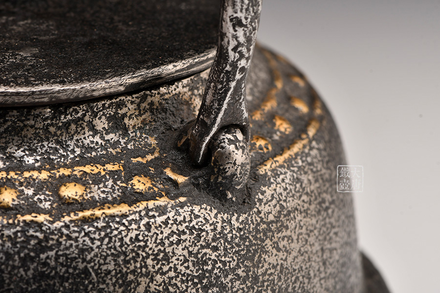 荒井工房的鐵瓶除了在鑄造工藝上有嚴(yán)格的規(guī)范和體系,在鐵瓶裝飾技術(shù)上也頗有建樹(shù)。除了傳統(tǒng)的印刻技術(shù)外,荒井工房還掌握了非常出色的金銀鑲嵌技藝,尤其以大片的鏨刻銀片最為出眾,這在山形當(dāng)?shù)靥每谥歇?dú)樹(shù)一幟。