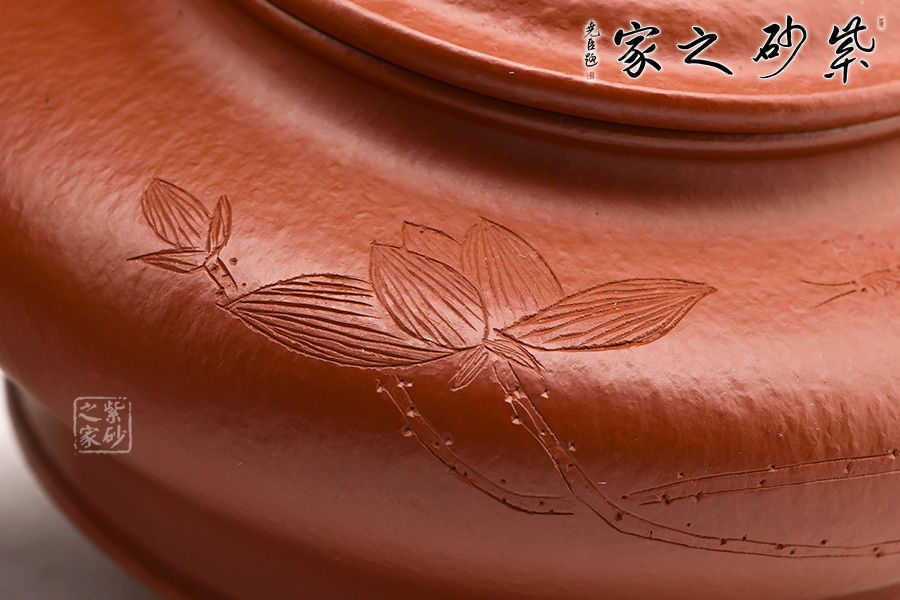 特點(diǎn):質(zhì)感綿密、緊實(shí)細(xì)緻,持之扎實(shí)沉重、紅潤豔麗,泥中極品,無以倫比;泥胚含少許原礦顆粒,沖淋熱水后色變極大,呈紅中帶紫,養(yǎng)壺易現(xiàn)“包漿”之美。