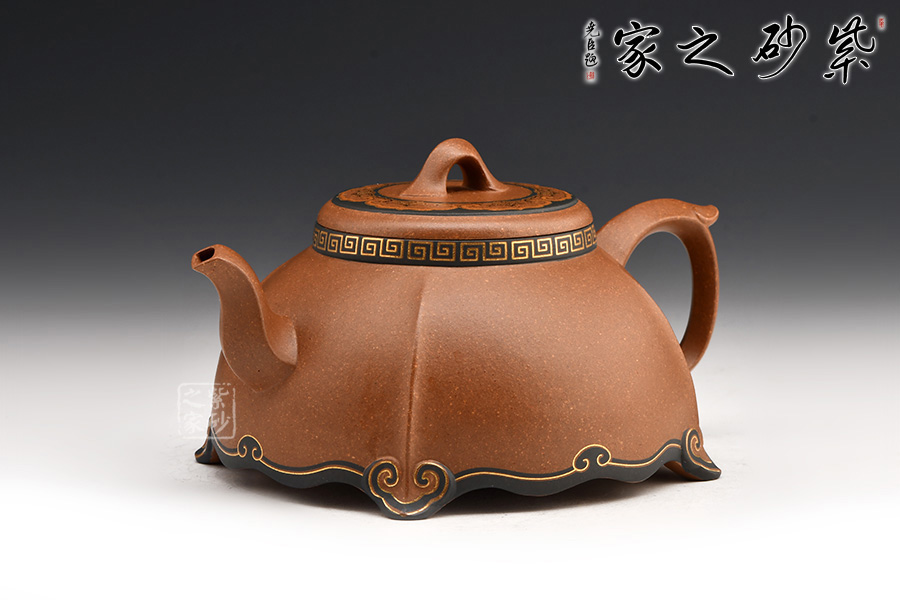 描金的回紋、如意紋裝飾壺身,既增添了此壺的美觀性,又讓壺的美好寓意更加深刻。