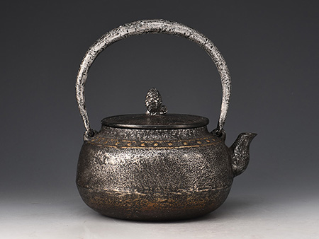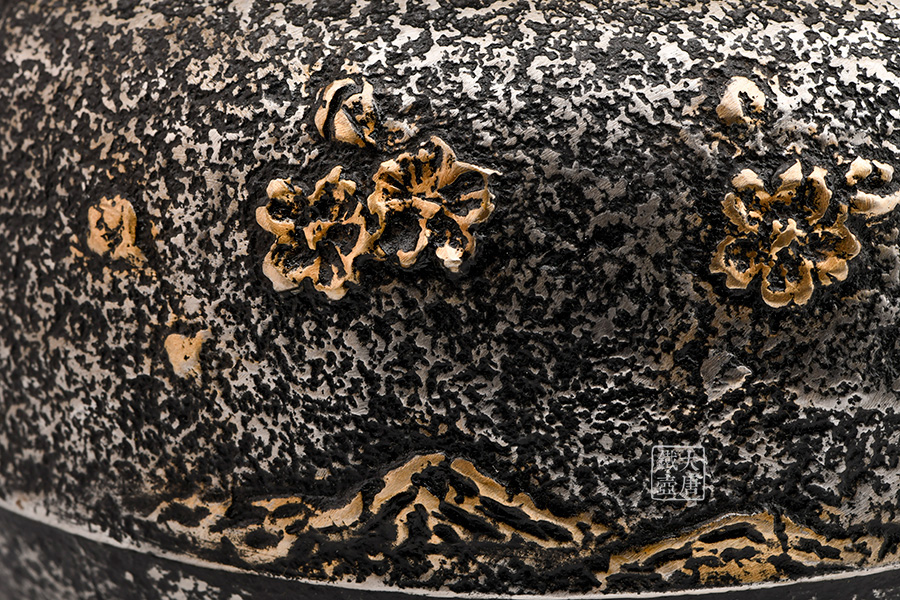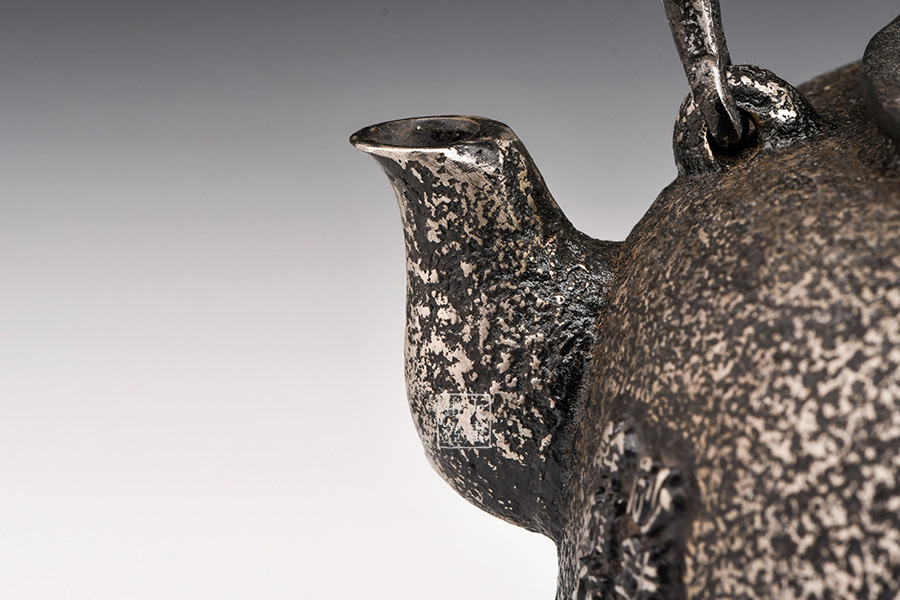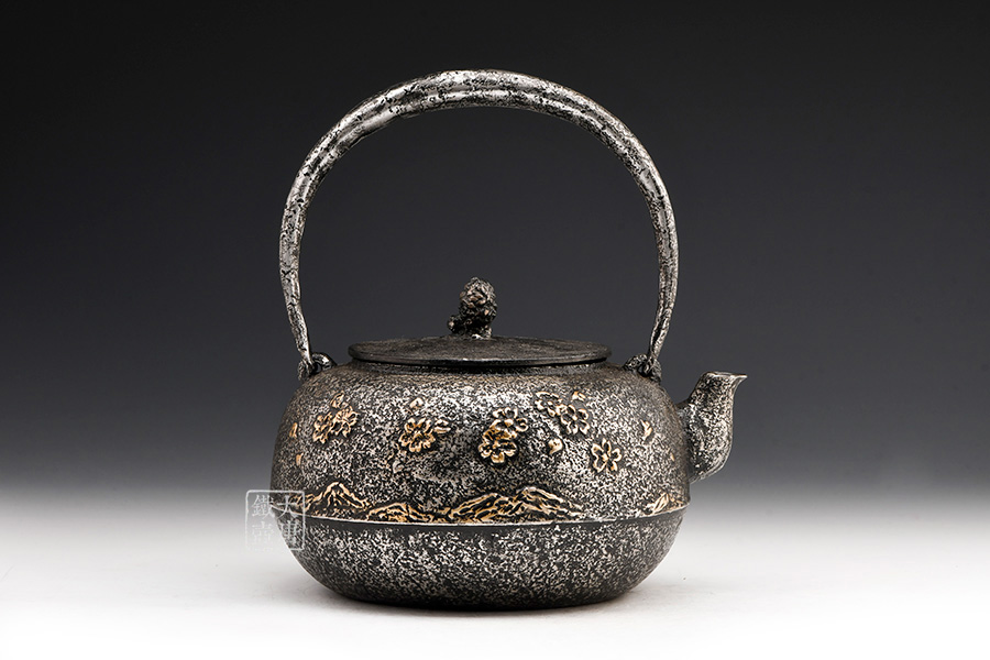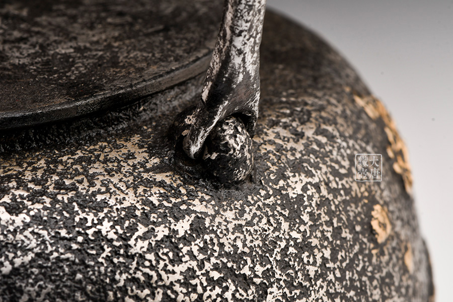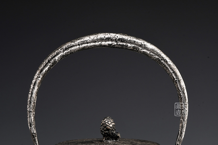 荒井工房的鐵瓶除了在鑄造工藝上有嚴(yán)格的規(guī)范和體系,在鐵瓶裝飾技術(shù)上也頗有建樹。除了傳統(tǒng)的印刻技術(shù)外,荒井工房還掌握了非常出色的金銀鑲嵌技藝,尤其以大片的鏨刻銀片最為出眾,這在山形當(dāng)?shù)靥每谥歇?dú)樹一幟。
