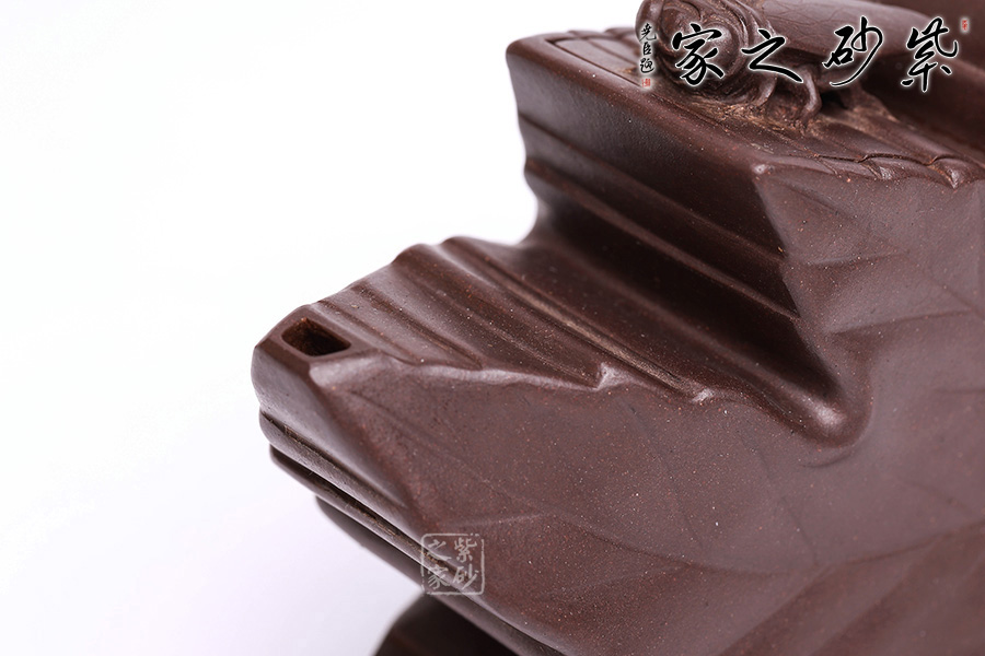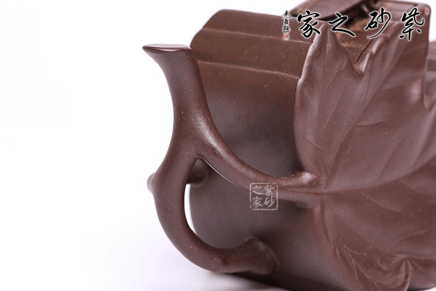 好作品的魅力,正是營造給人們無限的遐想空間,這遐想便是輕松愉悅的生活氣息。觀此壺,此種砂壺造型從未見過,絕對是一種大膽的創(chuàng)新。這片幸運的樹葉,如夢如幻。如此新穎的造型,不多見。