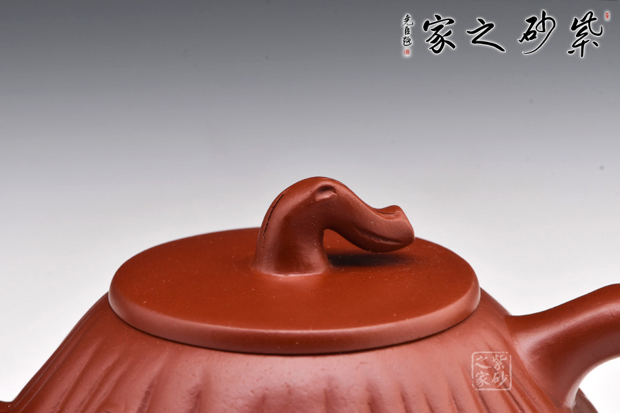 這款壺以石瓢壺的造型,增添了蓮蓬的紋理,形似一個碩果累累的倒扣蓮蓬。蓮蓬包含多個蓮子,取其諧音有連子的意思,寓意連生貴子,多子多孫。和蓮花一樣,象征著圣潔和清凈,非常的符合佛教形象體現(xiàn)的莊嚴(yán)美和典型美的結(jié)合。