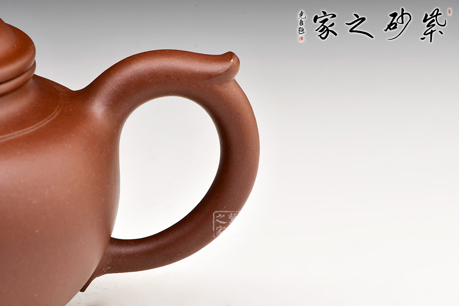 笑櫻壺是紫砂壺經(jīng)典款式,其壺身圓潤(rùn)飽滿,又不失雅韻之美。笑櫻壺的特點(diǎn):壺型由上至下漸收斂至圈足,壺底有一圓盤接底,增添了整個(gè)壺的穩(wěn)重之感;壺鈕塑造成了一個(gè)花苞尖的形象,精致小巧;壺蓋拱圓,和壺口嚴(yán)密結(jié)合,弧度齊整;豐肩束頸,平口出唇;云肩線清晰、爽利、大氣;三彎流的設(shè)計(jì)形如飛鳥,甚是優(yōu)美,將“笑櫻壺”的張力展現(xiàn)得淋漓盡致,且出水好;壺柄為飛把,耳形向上飛揚(yáng)。