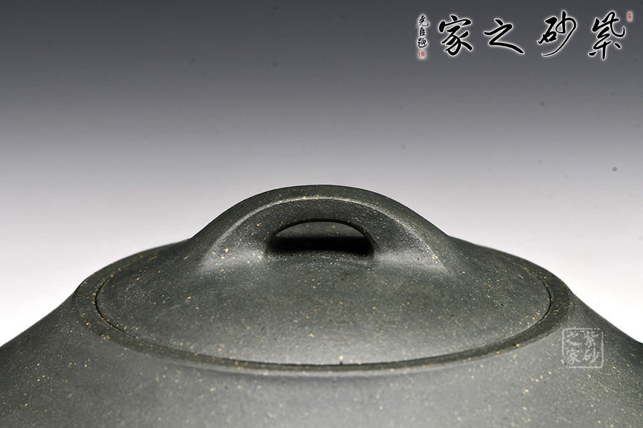 漢君壺的特點:壺身方圓并濟,大口斜肩,直壁腹,腹部以平行的兩圈股線分割,并由此分別向上下兩個方向伸展收縮,上下對稱、比例適當(dāng),營造出凝重而深厚的氛圍。一彎嘴微微揚起,扁方形圓形耳,蓋采用虛嵌式結(jié)構(gòu),呈圓弧形凸起,橋形紐。圈把、橋鈕、壺流貫通一氣、規(guī)則有序,虛實合一。作品整體線面明快,線韻效果強烈,其儒雅之風(fēng)、君子之氣呼之欲出。
