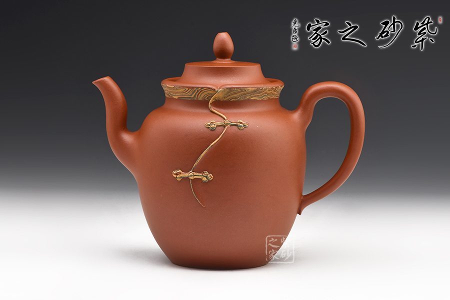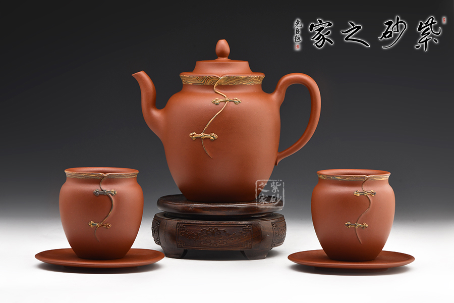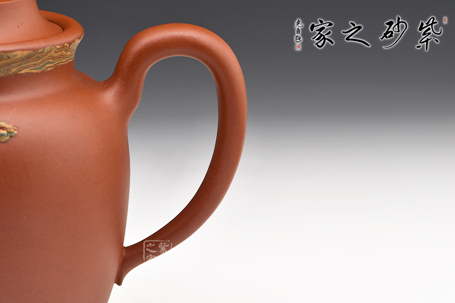 淑懿壺,一組三器,器型獨(dú)特,比例協(xié)調(diào),搭配合理,敦厚中透著貴氣。壺口處的絞泥色彩御帶,傳遞著它的動態(tài)美和氣度美。
