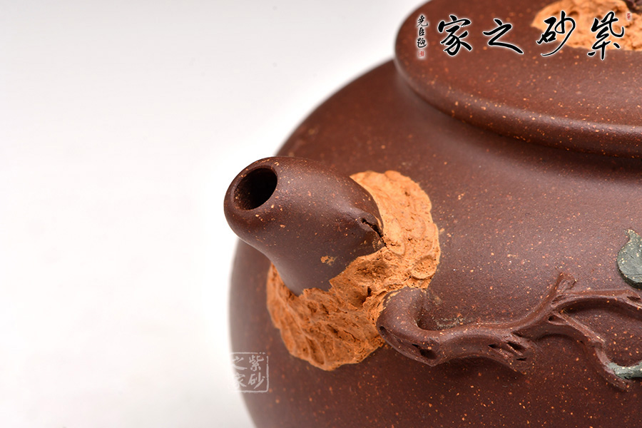 采用原礦紫泥,穩(wěn)定性佳,易掌控;緊密結(jié)實。壺鈕、壺嘴都枝節(jié)清楚,意韻十足,有樹的遒勁,也有樹的挺拔,壺身繪制新葉,寓意常青。做工精細(xì),氣度非凡,實用性觀賞性都很好。