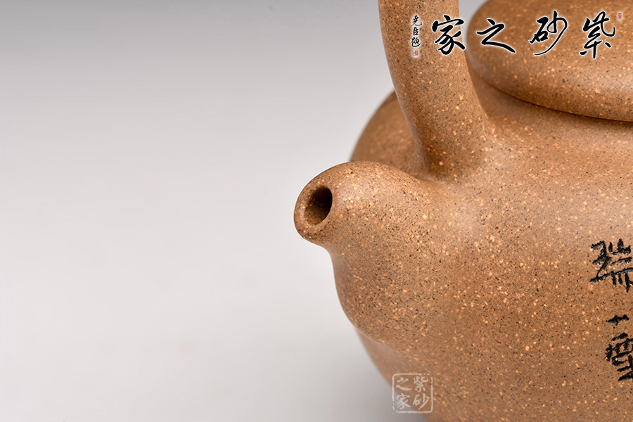 泥性:感甜嫩綿密,質(zhì)堅(jiān)而溫潤,呈近田黃色調(diào),為江蘇宜興趙莊山系朱泥礦~黃石黃之共生礦,經(jīng)挑揀練製而成,因含鐵量只達(dá)6%左右,致陶之后呈“金田黃色”。