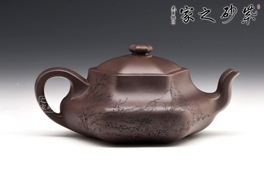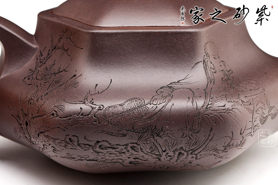 壺身刻繪洋洋灑灑,用刀細(xì)膩而不板滯,于演潤(rùn)秀雅中別有胸次和畫(huà)外功夫。在造型的規(guī)矩有致之外強(qiáng)化了作品的抒情性,頗具古雅之風(fēng)。