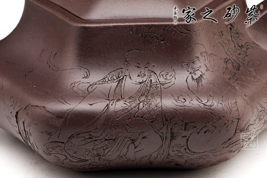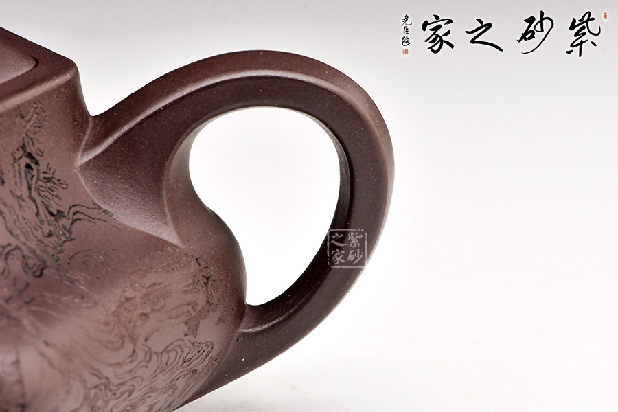 壺身刻繪洋洋灑灑,用刀細(xì)膩而不板滯,于演潤秀雅中別有胸次和畫外功夫。在造型的規(guī)矩有致之外強(qiáng)化了作品的抒情性,頗具古雅之風(fēng)。