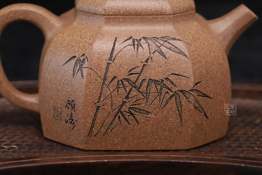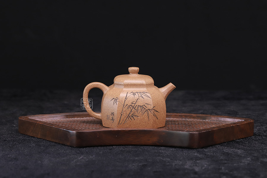 200cc,拿捏舒適又方便。竹子元素刻繪,與主題相呼應(yīng),君子之竹。深刻的內(nèi)涵,簡練的表現(xiàn),使壺藝家心手合一,渾然天成的功力讓人感受得透徹?zé)o遺,正為圓不一相,方非一式的頌語作了最佳的注腳。