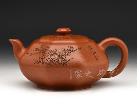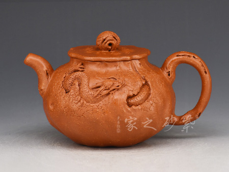 特點(diǎn):原礦因含緞泥、紅泥、紫泥等諸多共生礦,陶之后,于深沉之“橙紅色”底上,滿佈五彩斑斕的粗細(xì)、深淺之紅、黃星斑點(diǎn)。