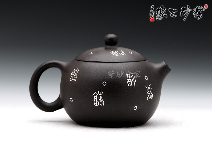 此壺為中國(guó)當(dāng)代工藝美術(shù)師丁小明老師的作品。此件西施壺猶如南方小家碧玉的女子一般,小巧玲瓏。小嘴,球身,倒把。它那小小的嘴巴,調(diào)皮的撅著,像一個(gè)正在耍小脾氣的小姑娘,生氣地撅著嘴巴。壺身的圓潤(rùn),讓人不由得聯(lián)想到她那柔美的體形。壺嘴流出的水細(xì)而無(wú)力,真像弱柳扶風(fēng)般的病西施。水滴順著壺嘴流到了壺底,好似流著眼淚,一副哀怨地訴著衷腸的樣子,讓人愛(ài)不釋手。