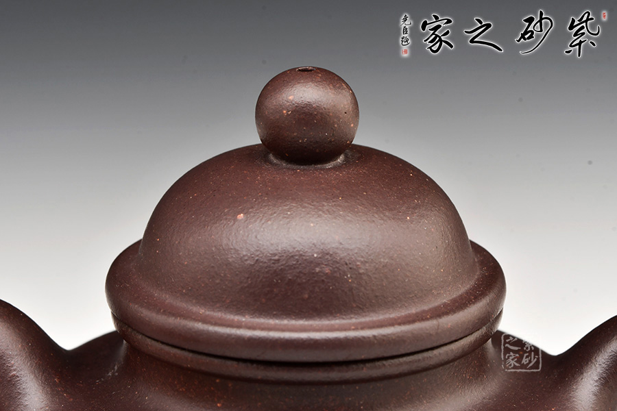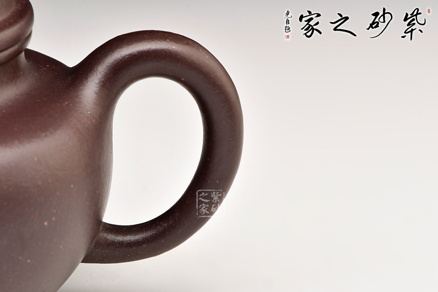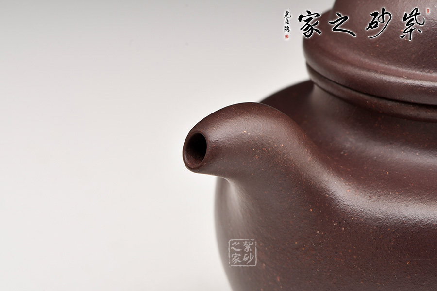 這款掇球顯得極具韻味,做工講究,整個(gè)壺型挑不出一絲的破綻,無(wú)懈可擊的工藝,可見(jiàn)老師的功底之深,掇球壺展現(xiàn)在我們面前的是一種幾何形體的藝術(shù)美,此款作品壺身線(xiàn)條流暢,使壺身顯得具 有一種流動(dòng)之美,具有韻味,且呈現(xiàn)一種古典之美來(lái),一彎流壺嘴與壺把同壺身暗接相連,連接之處處理細(xì)膩,作品素面素心的造型將紫砂壺質(zhì)樸無(wú)華的本質(zhì)展現(xiàn)無(wú)遺,更顯示出一種活潑柔順的美感,老師以簡(jiǎn)練的線(xiàn)條來(lái)展示作品古樸典雅的氣質(zhì)。