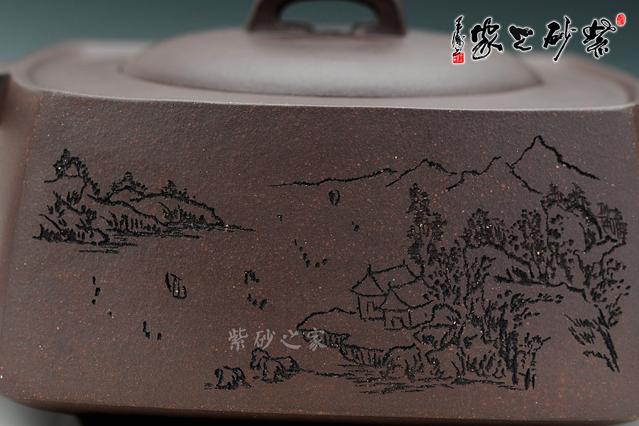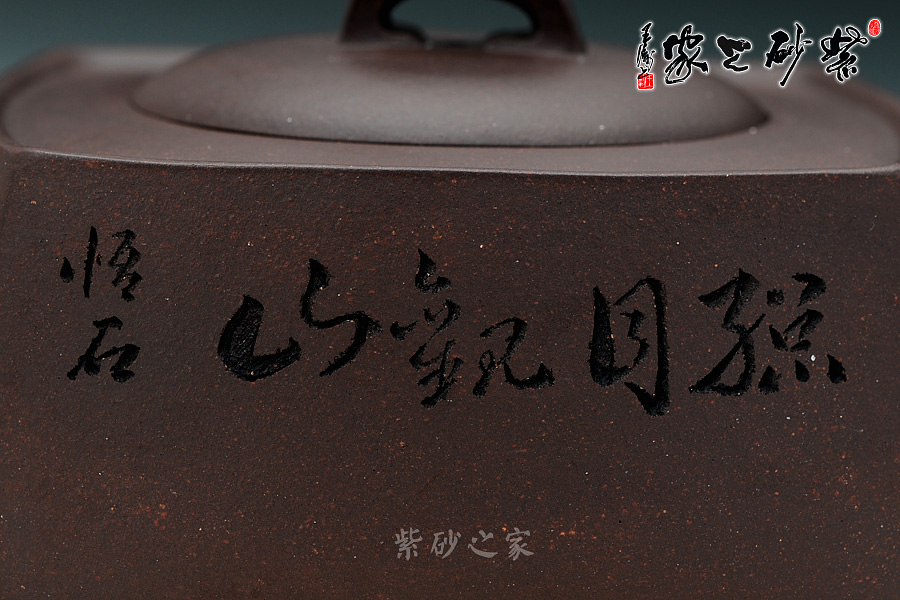 原礦紫泥全手工制作而成的壺沉穩(wěn)大氣,壺身為方,壺蓋為圓,印證了方與圓的結(jié)合以及其主題,同時亦將方與圓的藝術(shù)完美融合到一體,壺身方中見圓,圓中寓方,線條明朗挺括,而壺蓋線條柔和,形如帽子,如此做工精美絕倫,造型獨特,清新優(yōu)雅的作品自然會得到您的青睞。壺身篆刻“縱目觀山”四個字。