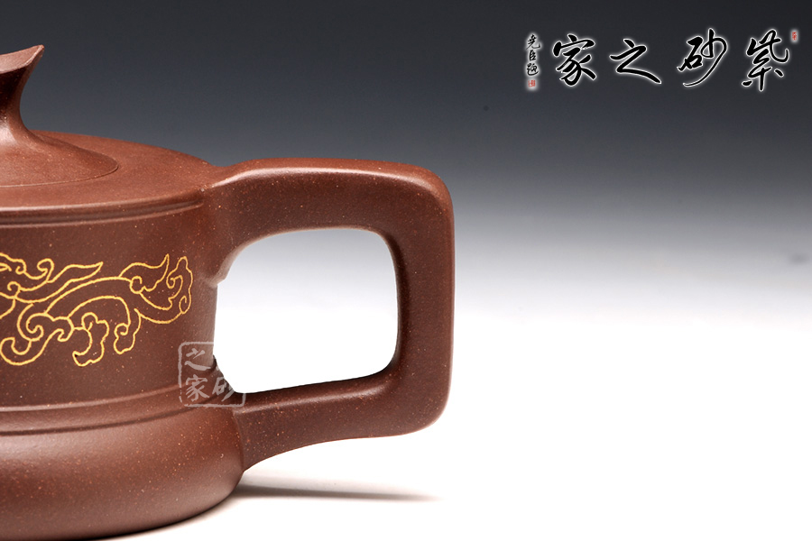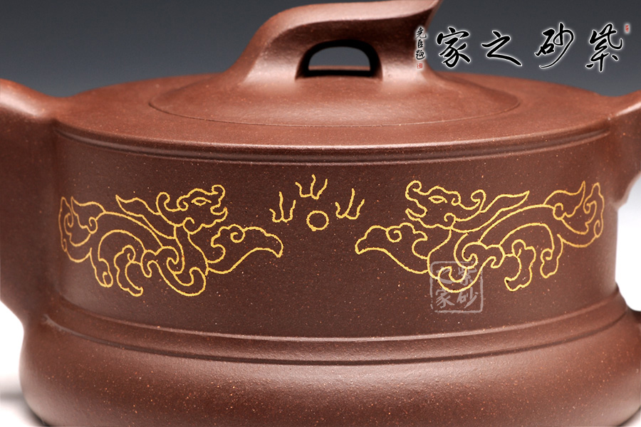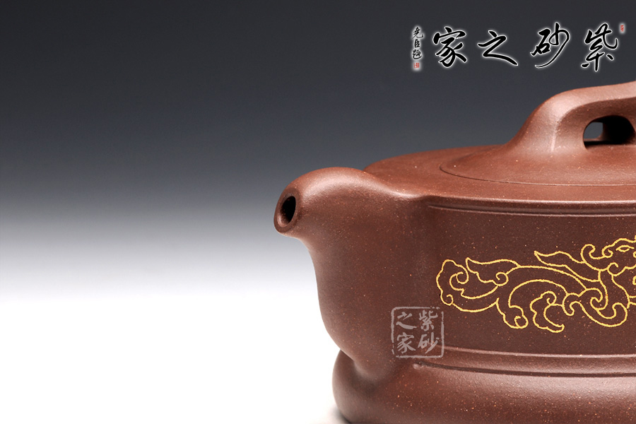器形優(yōu)美雅致,頗得古代文人之精神韻味,中和圓潤的姿態(tài)和低調(diào)的氣質(zhì),與中國傳統(tǒng)儒家文化暗合,符合審美特點(diǎn)。壺身以鑲金手法裝飾壺身,更顯整器的韻味與高雅。