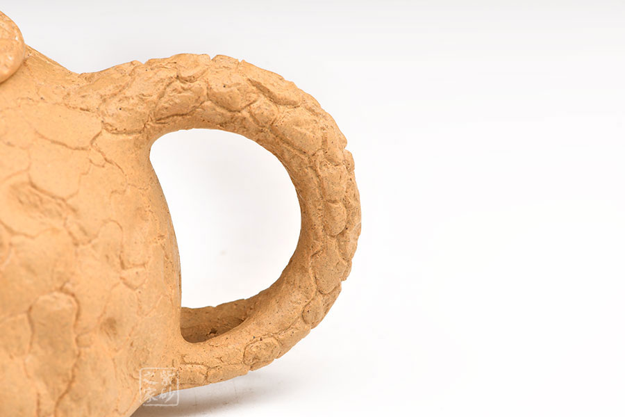 泥性:感甜嫩綿密,質(zhì)堅(jiān)而溫潤(rùn),呈近田黃色調(diào),為江蘇宜興趙莊山系朱泥礦~黃石黃之共生礦,經(jīng)挑揀練製而成,因含鐵量只達(dá)6%左右,致陶之后呈“金田黃色”。