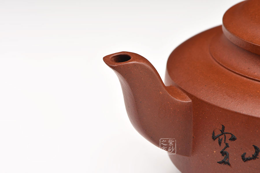 方形壺嘴,彎曲有致;方形壺把,滑落呈耳型,規(guī)正工整。