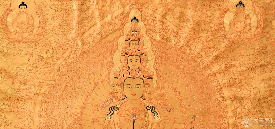 “千手觀音”,又稱千手千眼觀世音、千眼千臂觀世音等。千手觀音是阿彌陀佛的左協助,與阿彌陀佛、大勢至菩薩(阿彌陀佛的右脅侍)合稱為西方三圣,是佛教六觀音之一。