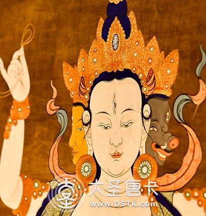 | 唐卡“師傅”開臉,筆路穩(wěn)重流暢。體現完美天人相,可見佛菩薩慈眉善目,賦予唐卡畫像生的靈氣。 | 細節(jié)決定品質,點睛之筆不到位影響整體美觀,五官比例不協(xié)調,面目呆板,缺乏靈氣。 |