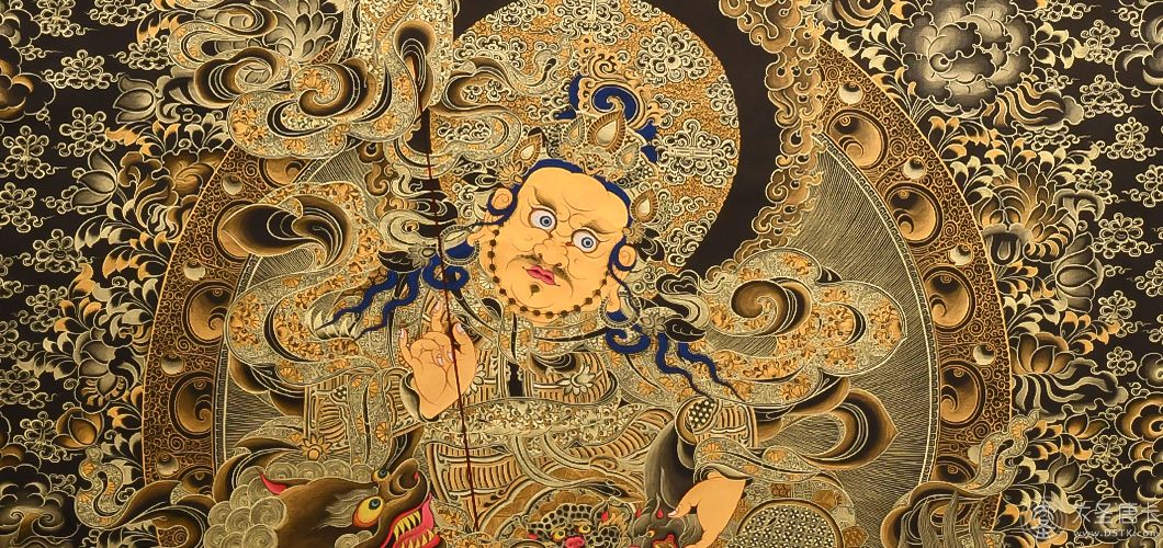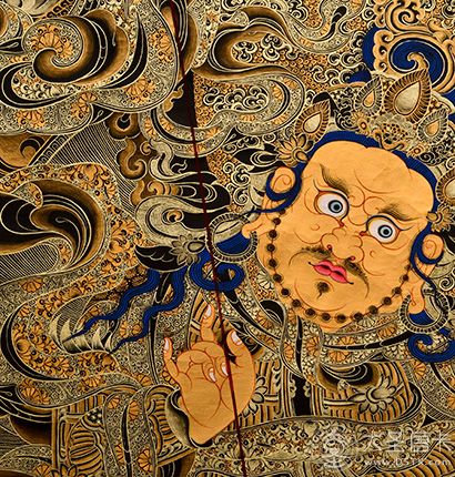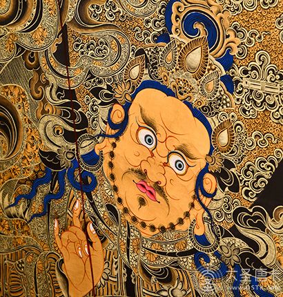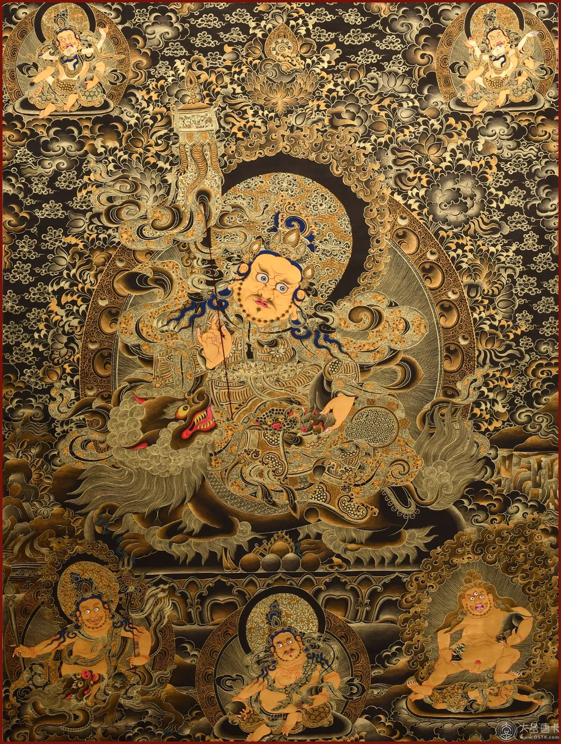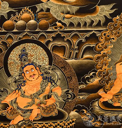 產地:熱貢 工藝:黑金 創作年份:2021 題材:財寶天王 繪制時間:6月 尺寸:*70*100cm 裝裱:無裱 材質:織面 使用場地:臥室