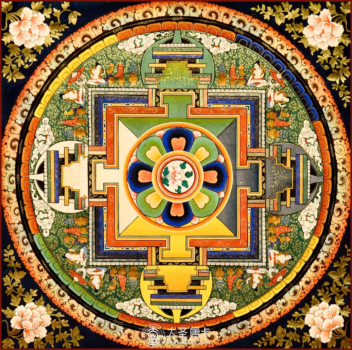 在藏密宗教藝術中,壇城被視為最為神圣、最奧秘、最有特色的代表性宗教藝術。壇城樣式獨特,刻畫精致絕倫,紋樣繁密華麗。壇城中裝載的是世間的智慧,更是圓滿世界的象征。