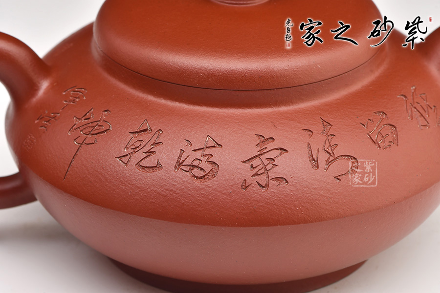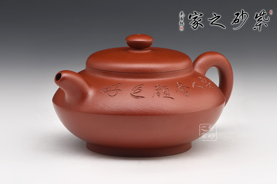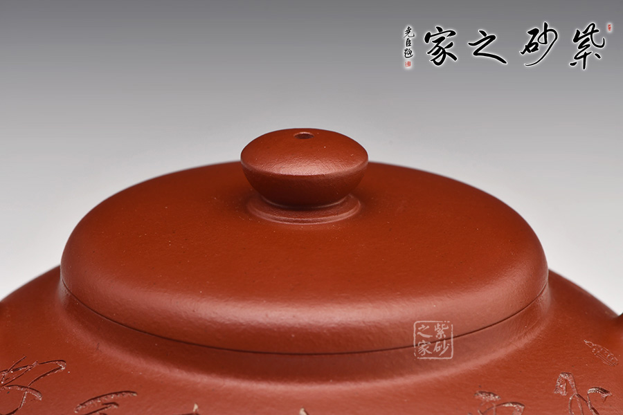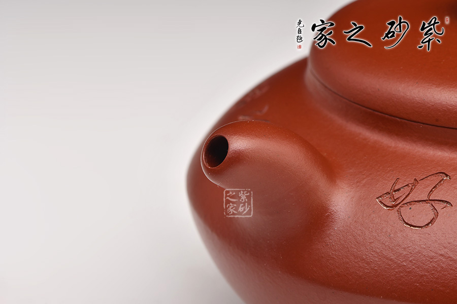 特點:質(zhì)感綿密、緊實細(xì)緻,持之扎實沉重、紅潤豔麗,泥中極品,無以倫比;泥胚含少許原礦顆粒,沖淋熱水后色變極大,呈紅中帶紫,養(yǎng)壺易現(xiàn)“包漿”之美。
