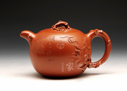 大紅袍精制而成壺,紅艷奪目,氣質(zhì)高雅,令觀者滿受瑞氣臨身,鴻運當(dāng)頭之意。