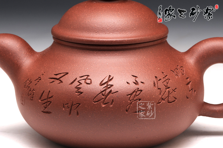 砂壺取材于源于佛教中的大肚羅漢,取名源于“肚大能容天下事”。早期作品壺形偏低,后來(lái)壺形漸高。氣韻極難把握,需要做壺之人用心體會(huì)。壺身篆刻的都是“野火燒不盡,春風(fēng)吹又生”。