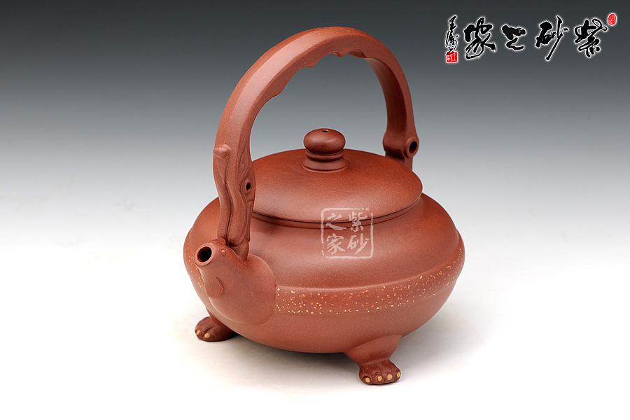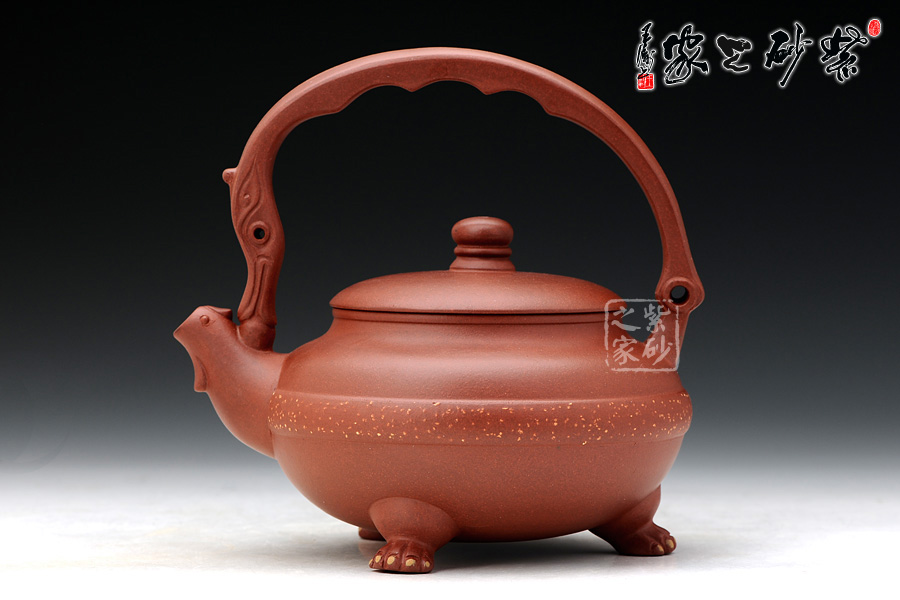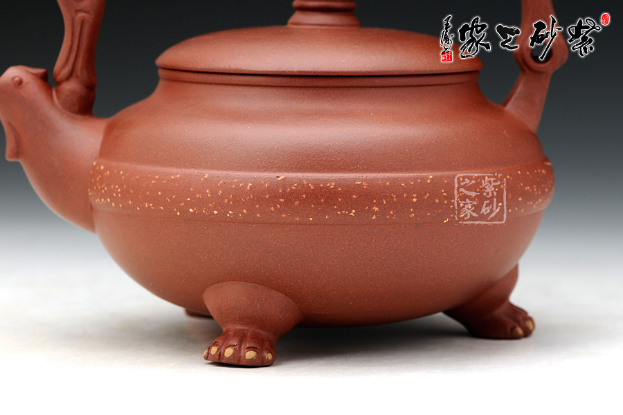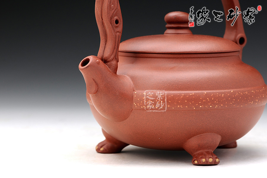 三腳提梁顧名思義,此壺由三只腳支撐而成,形成三足鼎立的局面,穩(wěn)重,此壺區(qū)別于其他的壺型,從造型來(lái)看構(gòu)思新穎,獨(dú)特,我想只有擁有精湛工藝的老師方可制出如此精致的壺型來(lái)。