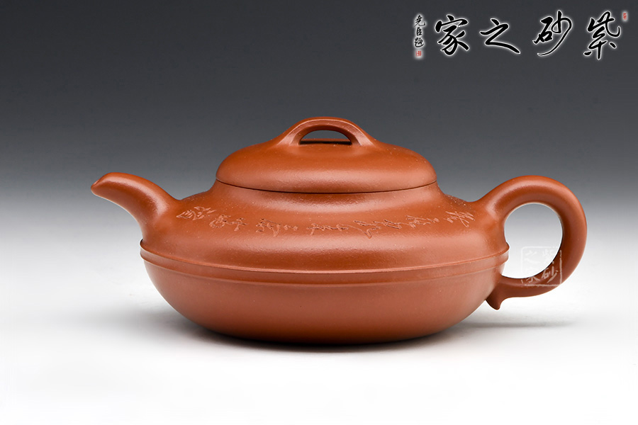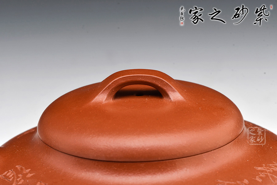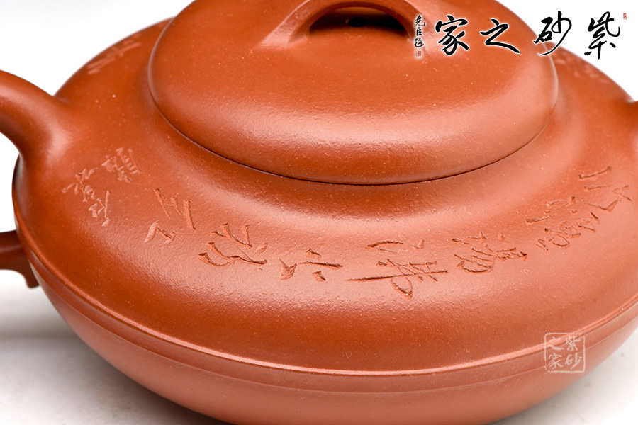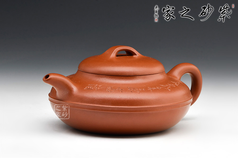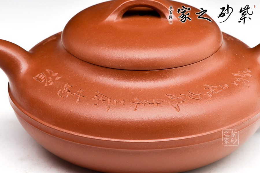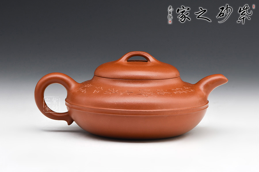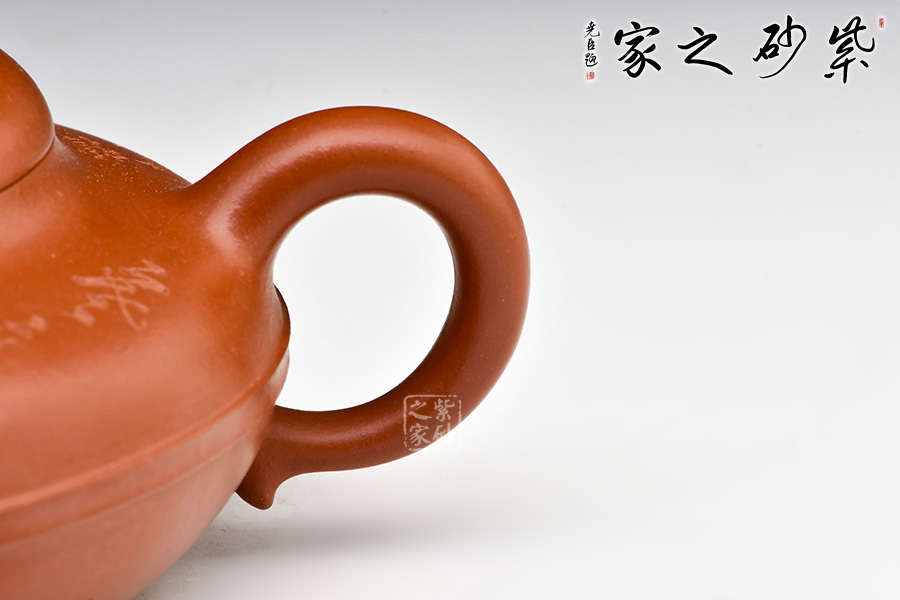 線圓為晚清民國(guó)經(jīng)典壺式之一,壺身用兩泥片合成扁球狀,口部與半球狀蓋相切,壺底簡(jiǎn)潔,為一捺底,橋梁鈕與蓋渾然一體,整個(gè)壺在扁圓中富于韻味,壺流自壺腹胥伸自然,把高挑圓潤(rùn)下留垂耳,與流對(duì)應(yīng)稱勢(shì),中置一腰帶線將全壺提攜神韻,腰線 帶方、角圓,變化中求統(tǒng)一,以求完美。壺肩圈刻,有文人古雅之味,整壺氣韻合一,上佳之作,藏家必入。