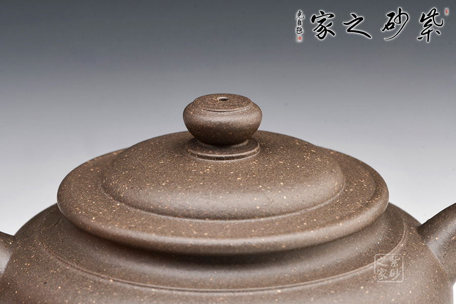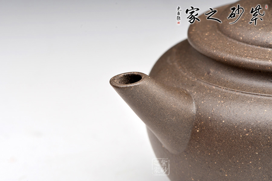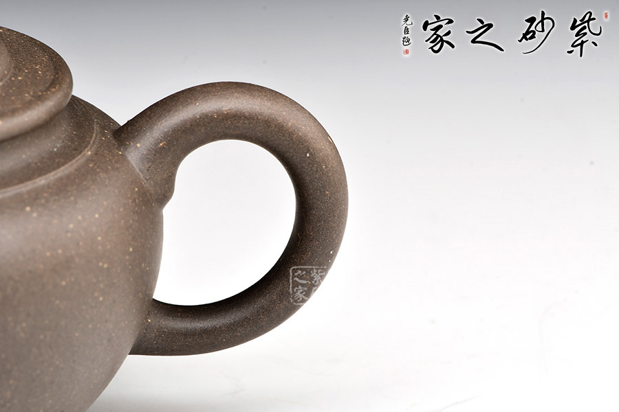 此壺精選青灰泥制作而成,泥質(zhì)渾厚古樸,形成十分特殊的古雅風(fēng)格;該壺圓潤(rùn)飽滿,密實(shí)而協(xié)調(diào)的壓蓋將圓潤(rùn)的壺身圓滿意味襯托得淋漓盡致,壺蓋圈線與壺肩圈線,過度自然,曲線優(yōu)美,收放之間見靈性;流嘴秀氣豐盈,弧線的柔美演繹到極點(diǎn),端握舒適,大方且實(shí)用。