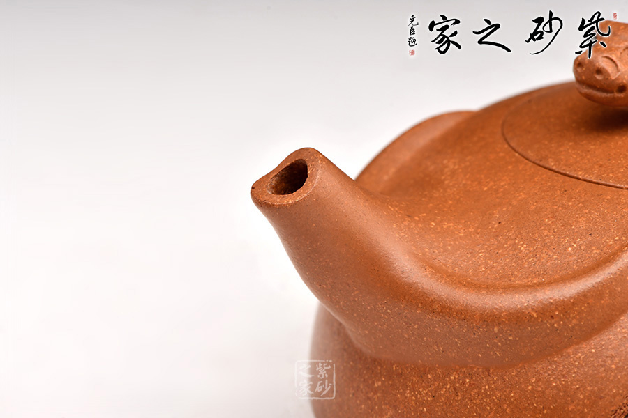 泥性:原礦因含緞泥、紅泥、紫泥等諸多共生礦,陶之后,于深沉之“橙紅色”底上,滿佈五彩斑斕的粗細(xì)、深淺之紅、黃星斑點(diǎn)。