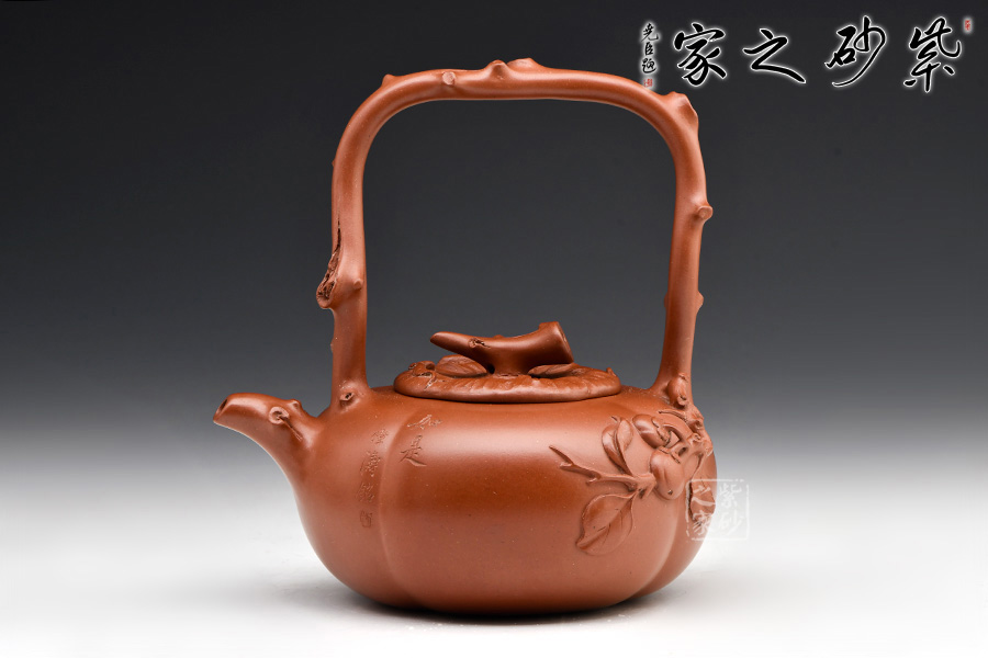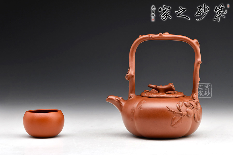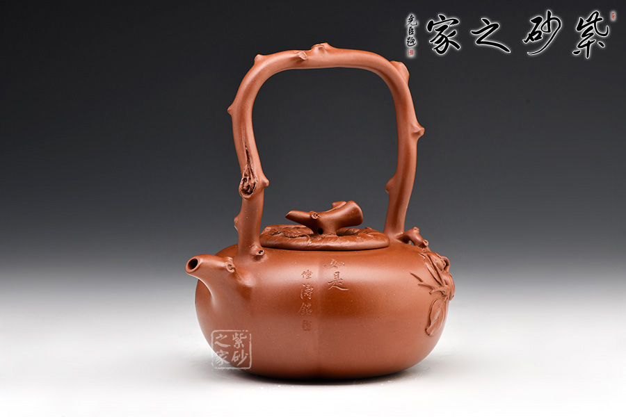 將傳統(tǒng)柿子壺型與提梁壺相結(jié)合,推陳出新,打破傳統(tǒng),讓人眼前一亮。