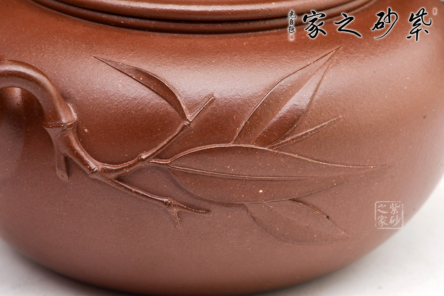 觀此壺,令人不由想到詩(shī)句:咬定青山不放松,立根原在破巖中。千磨萬(wàn)擊還堅(jiān)勁,任爾東西南北風(fēng)。不屈不撓的竹形象跳躍眼前。