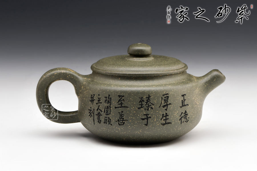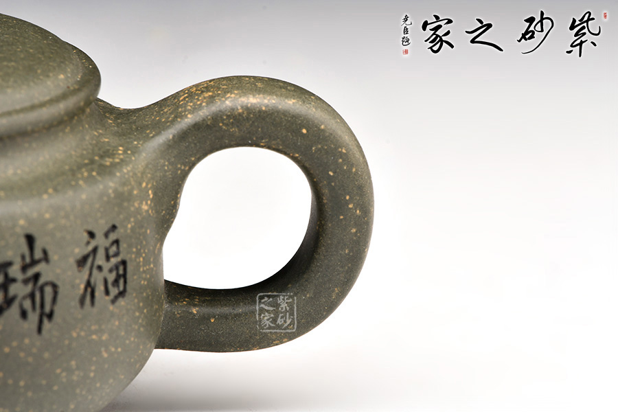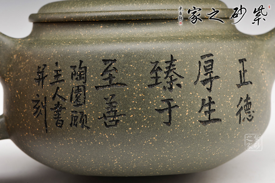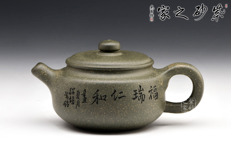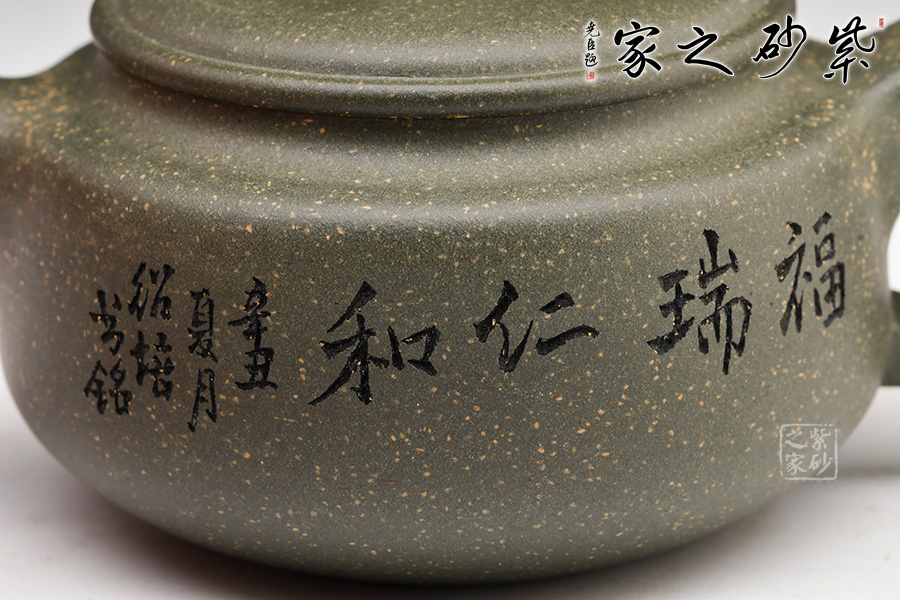 稀有雪華綠泥泥料制成,質(zhì)感渾厚,色澤清雅。中國(guó)工藝美術(shù)大師顧紹培刻繪,情趣韻味高雅。