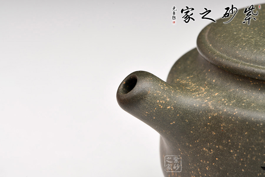 器型沉穩(wěn)自在,線條流暢自然,工藝精巧。線條流暢舒展,短頸精致,壓蓋吻合嚴(yán)密,做工嚴(yán)謹(jǐn)。柱鈕與壺身一致,互相呼應(yīng),融合一體。的流小巧,出水爽利;壺把為端把,孔洞大方便拿捏。給人溫潤(rùn)如玉、君子如蘭之感,是久愈泡養(yǎng)品鑒收藏的佳品。