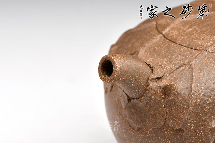 泥性:感甜嫩綿密,質(zhì)堅(jiān)而溫潤,呈近田黃色調(diào),為江蘇宜興趙莊山系朱泥礦~黃石黃之共生礦,經(jīng)挑揀練製而成,因含鐵量只達(dá)6%左右,致陶之后呈“金田黃色”。