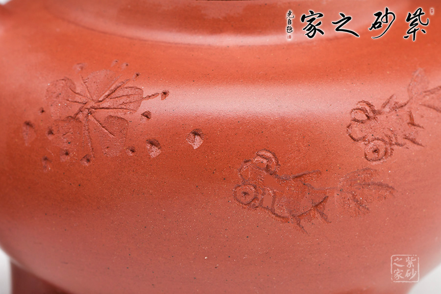 80紅泥陳腐后所制紫砂壺特點(diǎn)鮮明,其色澤更柔和光滑,顏色呈朱紅,觀之氣正韻悠,具有超強(qiáng)透氣性,壺身澆淋熱水后簿霧縈身。
