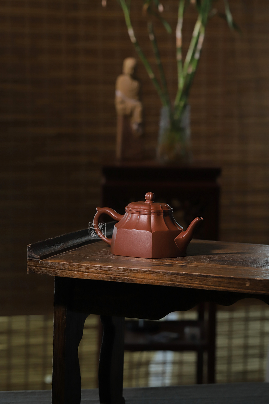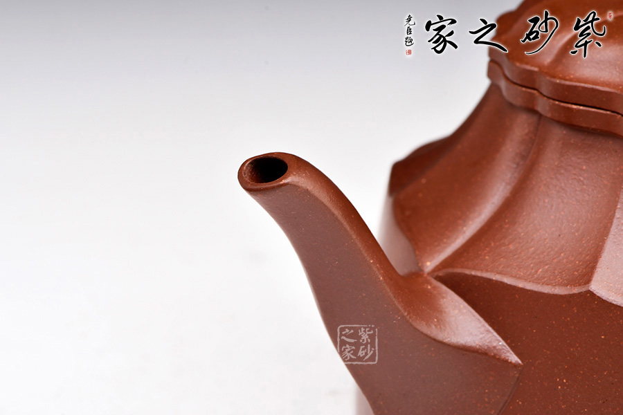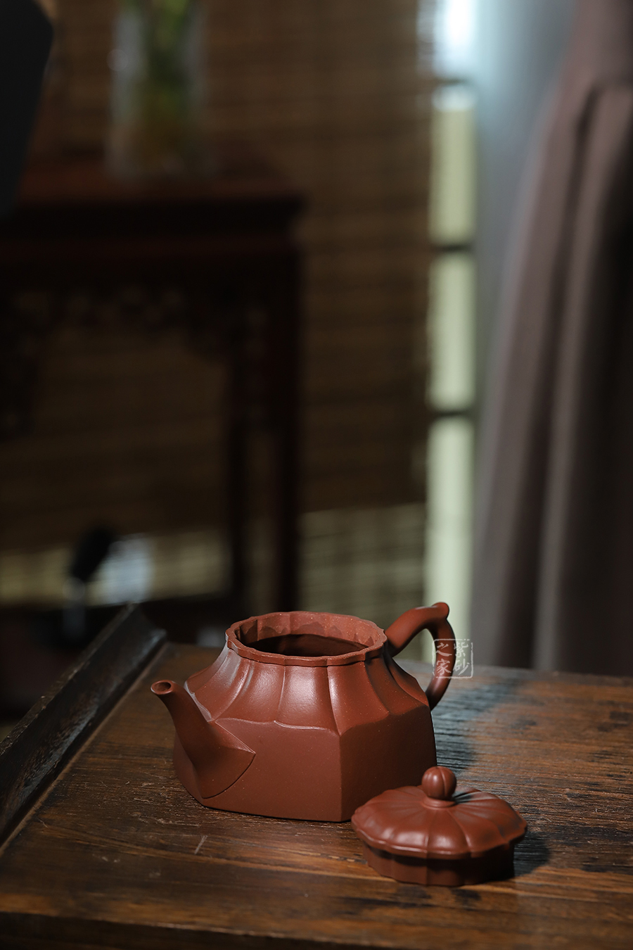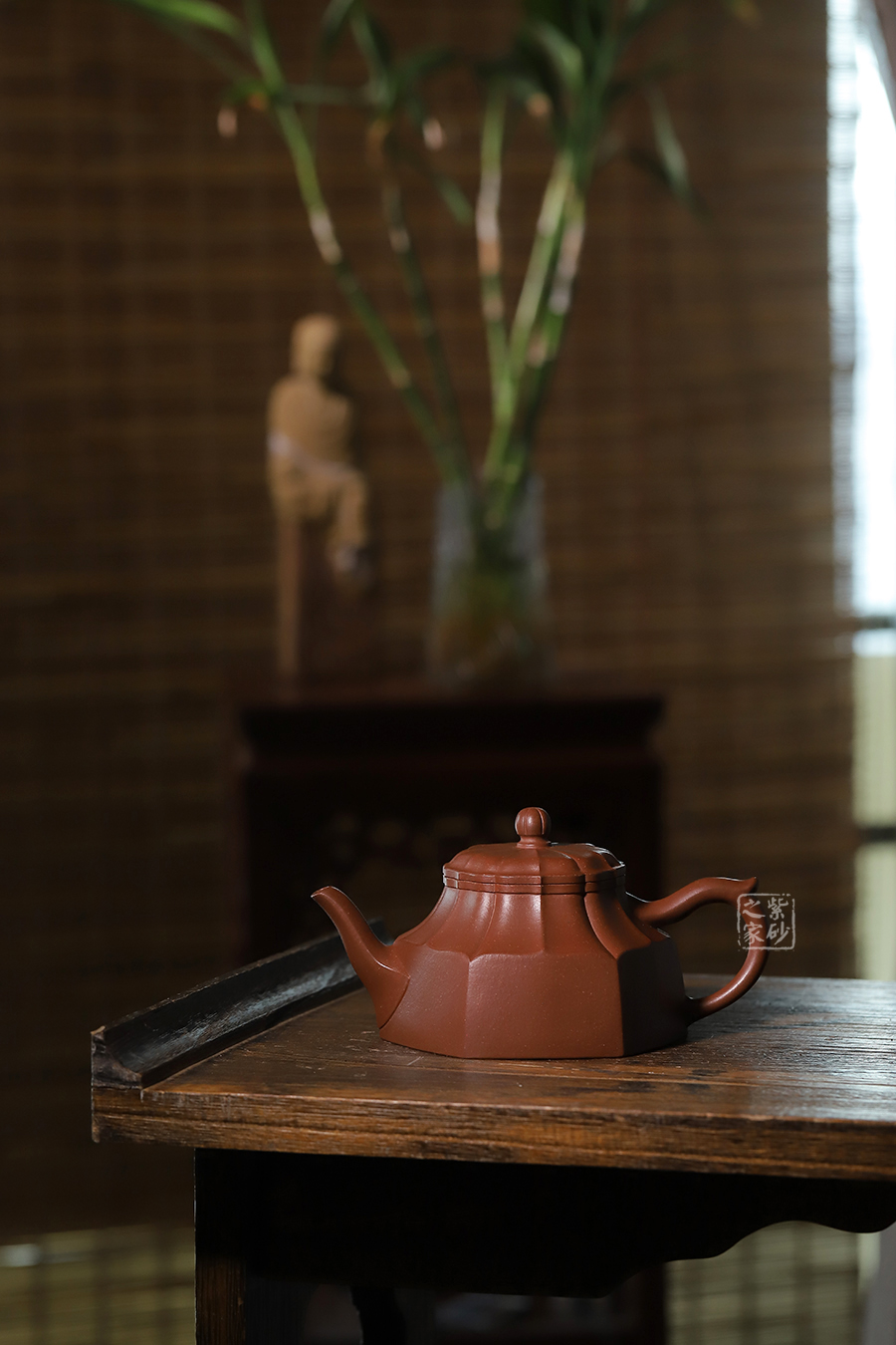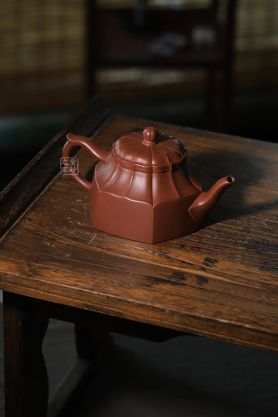 此“六瓣水仙壺”風骨奇特、典雅拙樸,體現了中國歷史人文的風骨之美, 是紫砂筋紋器的經典之作。