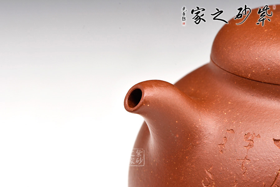 泥性:原礦因含緞泥、紅泥、紫泥等諸多共生礦,陶之后,于深沉之“橙紅色”底上,滿佈五彩斑斕的粗細(xì)、深淺之紅、黃星斑點(diǎn)。